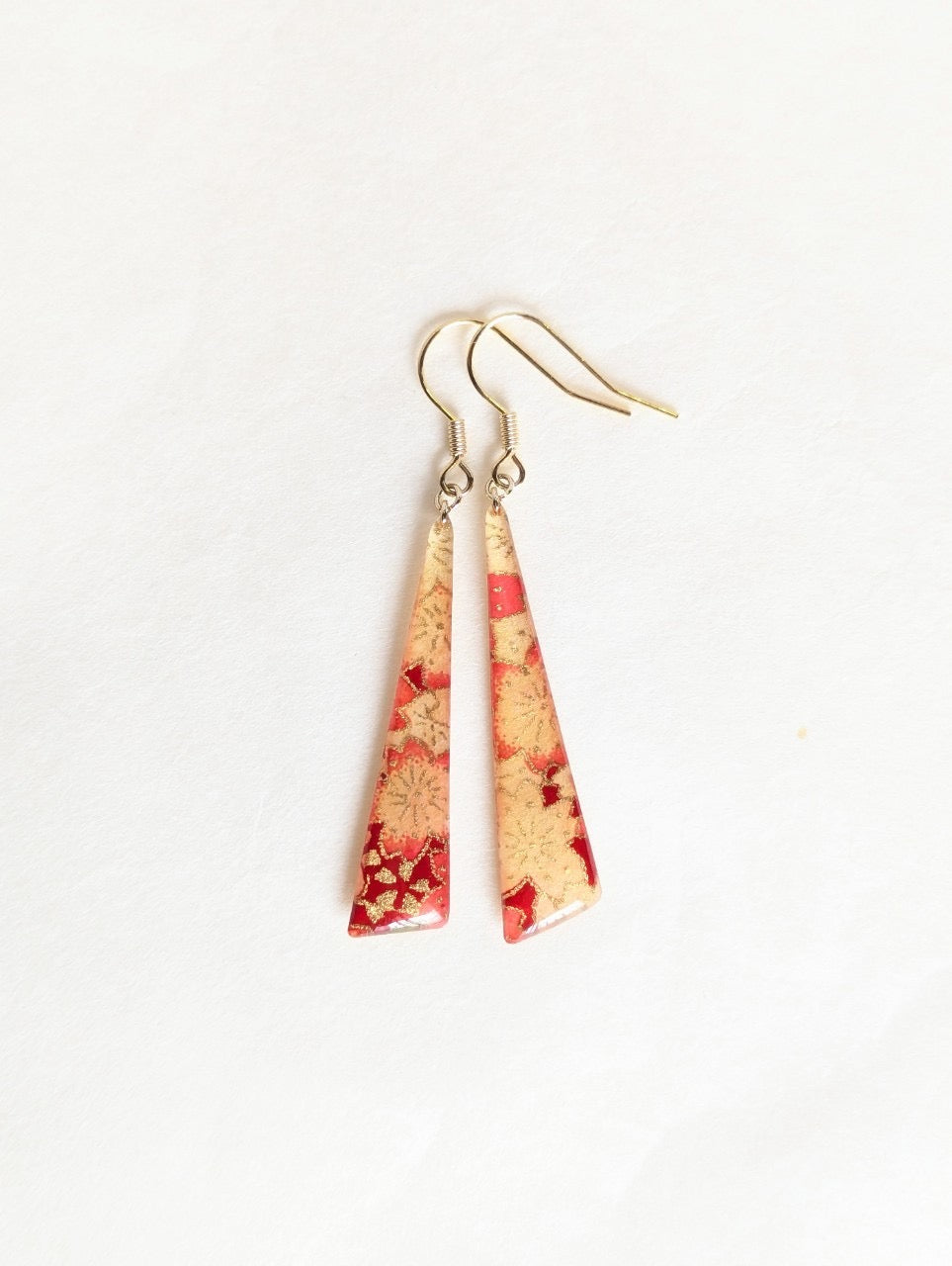 風になびき揺れるピアスの裏面まで煌びやかな作品です。